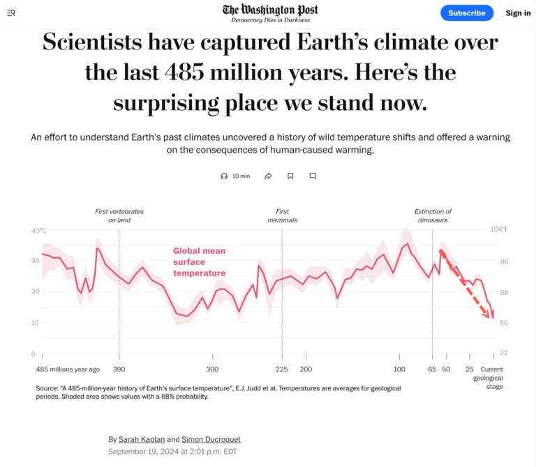 And lets not forget that climate scientist claims are based on data derived from the 1880s onward, while they act as if millions of years of the Earth’s temperature history doesn’t exist. Temperatures in the past have been far hotter (and far colder) than they are today, and atmospheric carbon content records going back millions of years show there is no causational relationship between carbon emissions and warming conditions.