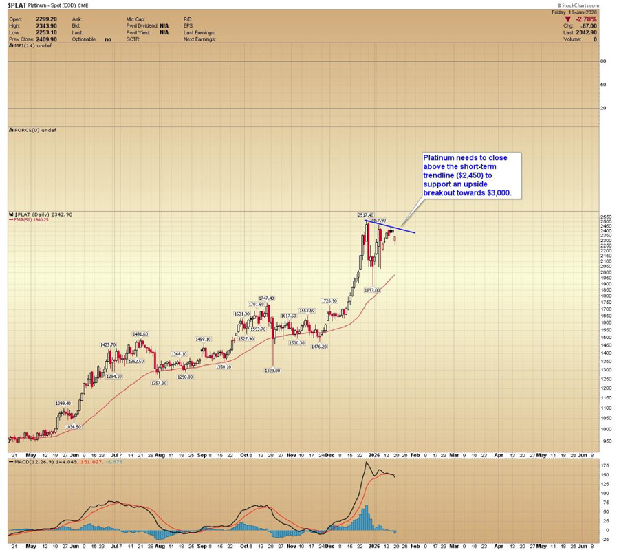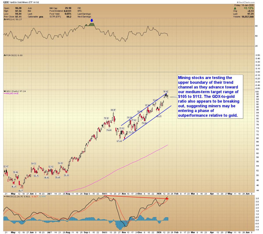 Silver’s breakout above $50 has been 45 years in the making, and prices could rise far beyond what most expect. I see this as the opening salvo in an explosive bull run that could propel silver to $300 or higher by 2030. New buyers should proceed with caution, as a significant correction is likely once this blow-off phase terminates. I’ll alert members when the next major buying opportunity emerges, with a strong focus on silver miners.
