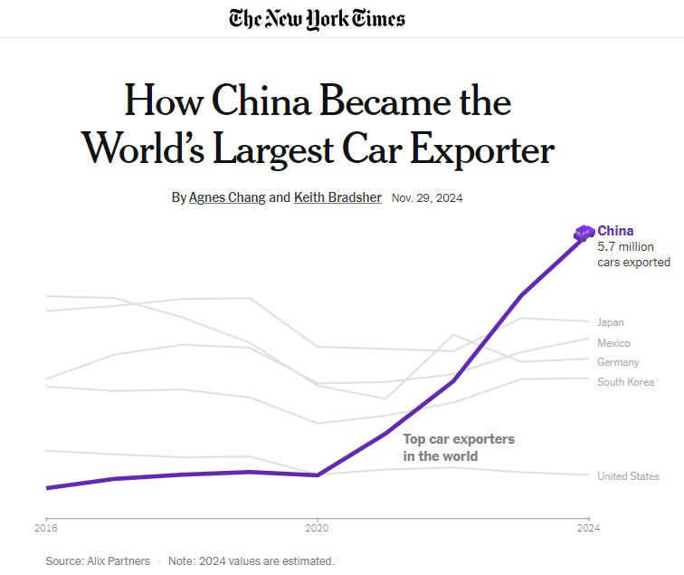 In the electric automative sector, the US has one big player Tesla while China has BYD, Cherry, Great Wall, Nio, Xpeng, Li, Huawei, Xiaomi, and dozens more as well as Tesla.