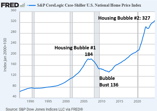 The Case Shiller National Housing Index offers a snapshot of Housing Bubble #2.