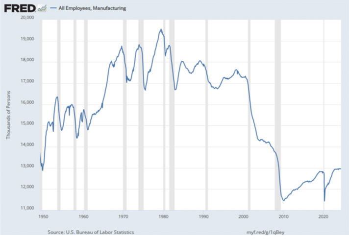 The majority of ESG related entities were, as we now know, funded by western governments using taxpayer dollars to fuel an astroturfed leftist revolution. As I noted in my article ‘Rothschild Admits ESG Failure As Globalists Shift To “Inclusive Capitalism” Agenda’, published in September of 2023: “ESG was intended to be the tool that globalists and governments would use to force companies into the stakeholder capitalism model… The goal was to incentivize corporations into bombarding the public with woke messaging 24/7. Every movie, every TV show, every book, every comic, every children’s cartoon, every commercial, every product, every major social media site, every employee handbook, every social interaction would be tainted with the poison of woke propaganda. There would be nowhere to hide, nowhere to escape the messaging. And it worked, for a little while…” A couple years ago I argued that ESG was dying after the Federal Reserve began to raise interest rates. There was an observable decline in financing for woke programs and propaganda across the board. In other words, there were a lot of NGOs and other entities that were receiving government funds and they were recycling those funds into far-left ESG, DEI, and CRT projects. When the central bank started hiking interest rates, the lending cost more and the money started to dry up. The exposure of ESG by the alternative media and the strangled flow of cheap cash signaled the death knell of a decade long agenda to “wokify” the west. It was so exposed, in fact, that Lynn de Rothschild, a leader in ESG and the head of the Council for Inclusive Capitalism, admitted the idea was sullied and needed to be changed or “re-branded”. I don’t think many Americans realize just how pervasive the ESG agenda truly was. The recent exposure of USAID by Elon Musk and his DOGE team is shining a light on just a portion of it. For example, the USAID spending millions to prop up leftist propaganda machines like Politico (through ultra expensive “subscriptions”) is quite the eye opener, but what about the billions of dollars that went into ESG venture capital projects to fund dozens if not hundreds of liberal online media outlets, movies, TV shows, video games, woke advertising, etc. The extent of the influence was massive. And, it is likely that most of the cash supporting this enormous social engineering project came from the Federal Reserve and the pockets of US taxpayers. We were paying for our own indoctrination and economic demise, and I’m sure the people behind USAID and other rogue institutions had a good laugh about that. Of course, they aren’t laughing now. Now they’re out of a job. But is the damage already done? Is there no going back? The excessive spending through ESG was not only designed to change western culture, it was also designed to hide glaring weaknesses in the current system. Since before the elections I have continued to warn that Trump’s greatest adversary is not the Democrats or the “deep state” or leftist activists; rather, his greatest adversary is the US economy. Trump has inherited a system in stark decline, but much of this data is unknown to the public at large. The Biden Administration used creative accounting to hide much of the damage. They were unable to obscure the greater effects of stagflation on retail prices and the housing market, but the inherent weaknesses in the labor market, wages, GDP, energy markets, national debt and the US dollar are all less understood by the public. The Biden Admin is gone but they have left a ticking time bomb behind; the data they were suppressing is about to be unleashed and Trump’s first year is going to look like a financial disaster unless he addresses the problem immediately. I outlined this problem in detail in my article ‘Smoke And Mirrors: What Happens After Biden’s Economic Manipulations Disappear?”, published in September of 2024. In that essay I predicted Trump’s election win, but I also explained why the presidency could be booby trapped with an economic crash that is ultimately blamed on conservatives. It’s important to keep in mind that as the truth is revealed there is always a chance the public (and the investment world) will panic. A lot of alternative economists, myself included, have discussed the possibility that if the truth about our economy was ever made widely known, the entire global edifice might come crashing down from the weight of the revelation. If people knew how much corruption and fraud was a part of our daily lives, our economy and our national framework, what would happen? It’s not enough to simply draw the curtain and unveil the ugliness underneath, a solution must also be offered. The answer might actually come from the very ESG projects that were designed to destroy the US in the first place. ESG was drawing its money from unprecedented debt spending and taxpayer dollars. That’s not going to work for obvious reasons. However, Trump’s tariff measures may hold the key. In other words, make corporations and importers pay for the rejuvenation of domestic production and perhaps even breath new life into an America-based cultural renaissance. The original NAFTA agreement (and similar policies) removing most trade barriers between the US, Mexico and Canada was an incredible betrayal of the US economy by a coalition of Neo-Cons and Democrats, facilitated in 1992 by George H.W. Bush who was obsessed with globalization. Bush (and others in government) wanted a European Union-like arrangement in North America, a supranational body that would eventually dissolve borders and operate as a single economic and social entity. NAFTA didn’t go into effect until 1994, but then President Bill Clinton certainly ran with it. Within six years US manufacturing jobs and industry collapsed.