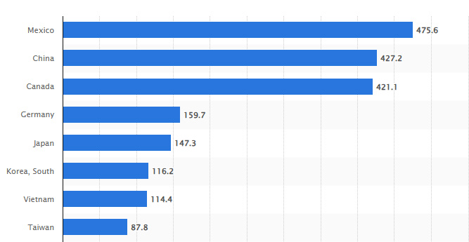 Source: Statista Trade Wars Gone GlobalIn addition to the Mexican, Canadian and Chinese tariffs, Trump announced that EU tariffs are coming soon. Trump tentatively indicated that the EU tariffs would be 10% across the board. Trump seemed more relaxed about UK tariffs but given UK Prime Minister Keir Starmer’s tilt toward the EU lately, it may be the case that the UK is lumped in with the EU when it comes to tariffs on European trading partners. Of course, all of these tariffs would come on top of the severe financial sanctions on Russia that have been in place since 2022 as a result of the War in Ukraine. Once retaliation is added to the original tariffs, it’s clear that a full-scale global trade war is now underway. Let’s look closely at the trade situation with regard to Mexico and Canada. U.S. Border TariffsCanada ($421 billion) and Mexico ($475 billion) account for almost 30% of all goods imported by the United States. Canada and Mexico along with China are the three largest trading partners of the U.S. Obviously, Canada and Mexico are our closest neighbors, and each shares a long border with the U.S. The new trade wars will have many facets but solving problems with regard to Canada and Mexico will be a big part of the global puzzle and establish benchmarks by which other countries will be judged by the U.S.