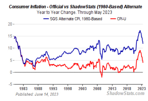 So instead of inflation peaking at around 9% in 2022, Shadowstats says it actually peaked at over 16%.