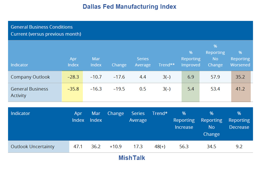 Today, the Federal Reserve Bank of Dallas released the Dallas Fed Manufacturing Report for April.