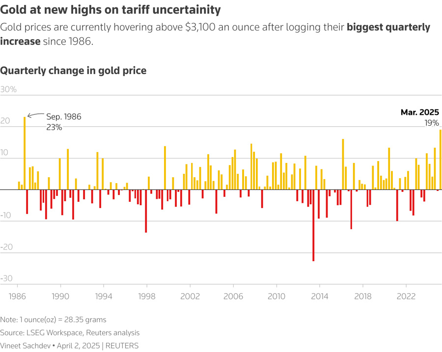 “While the whole tariff imbroglio has weighed on the dollar and should be good for gold, but faced with potential margin calls in various markets, leveraged participants often have to sell whatever they can,” Tai Wong, an independent metals trader, told Reuters.