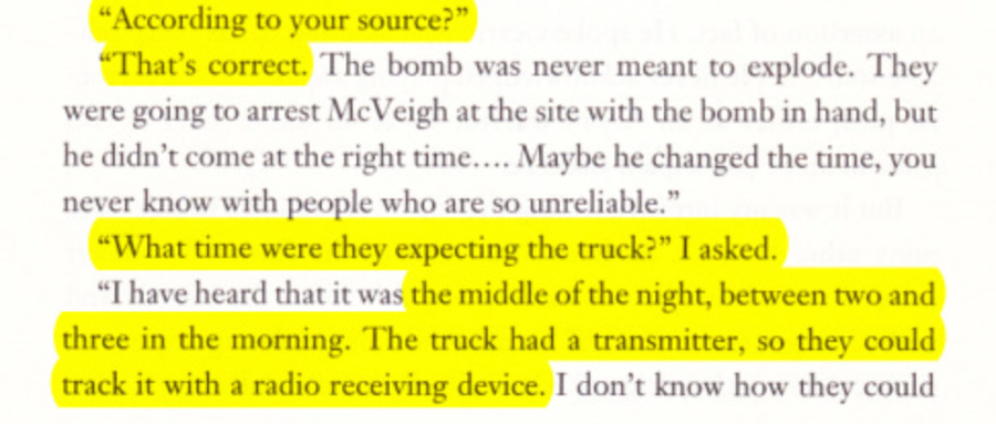 Charles goes on to describe the ARA’s use of scanners—likely how McVeigh, in fact, knew that there were agents out there that night transmitting and waiting on the truck.
