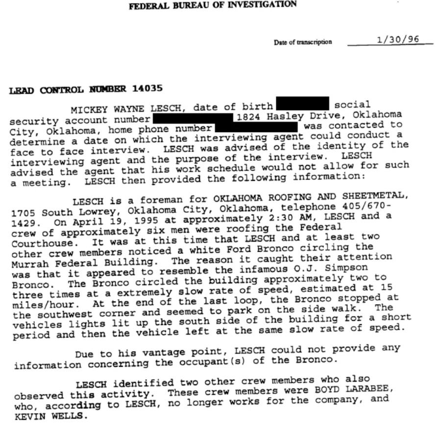 Obscure 302 Report Details Ford Bronco Doing Reconnaissance on Murrah Building