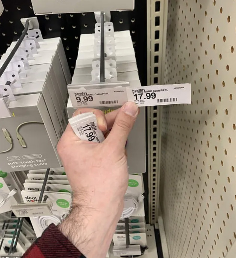 'It's happening,' the worker wrote, sharing a photo of the price tag update. 'All of Heyday [a brand of electronic cables] is going up.'