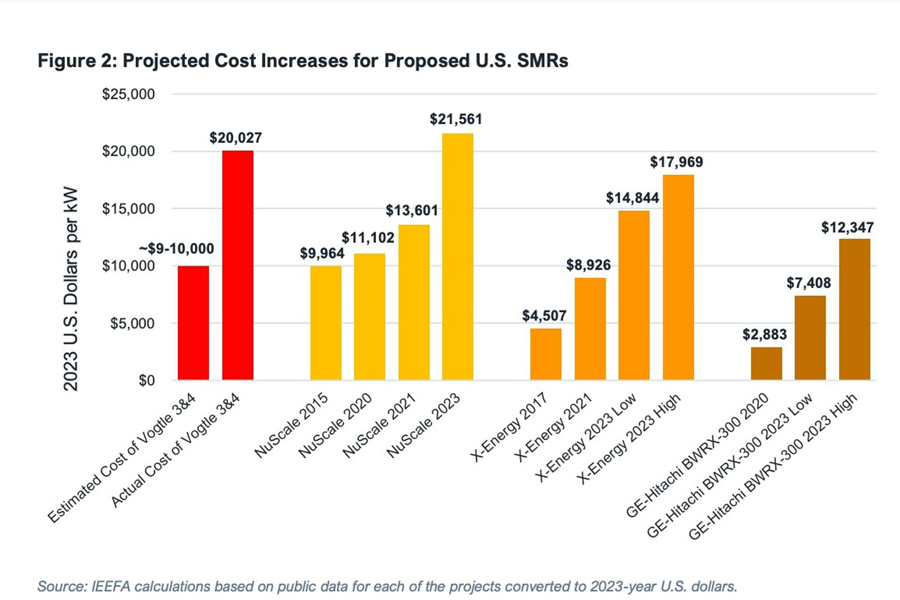 Not only are the excessive costs of building SMRs problematic in and of themselves, says the IEEFA, but the money being poured into the projects is money that is not being spent on developing other sources of energy that are cleaner, quicker to deploy, and safer.