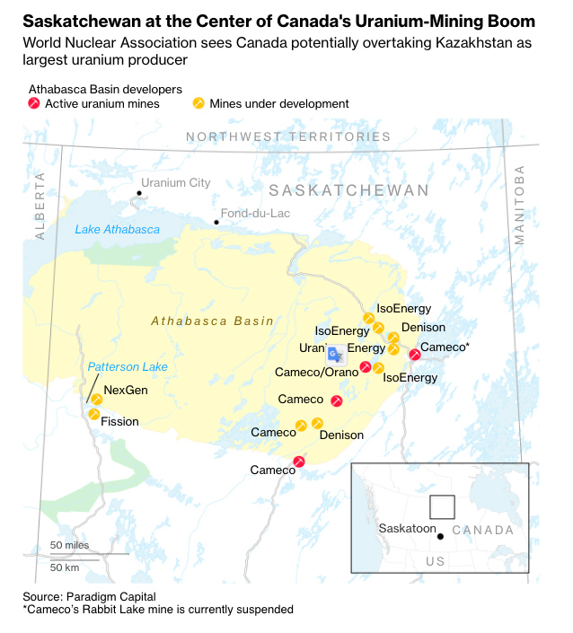 A new report from Bloomberg highlights that Canada's Saskatchewan province is the epicenter of the country's uranium mining boom: