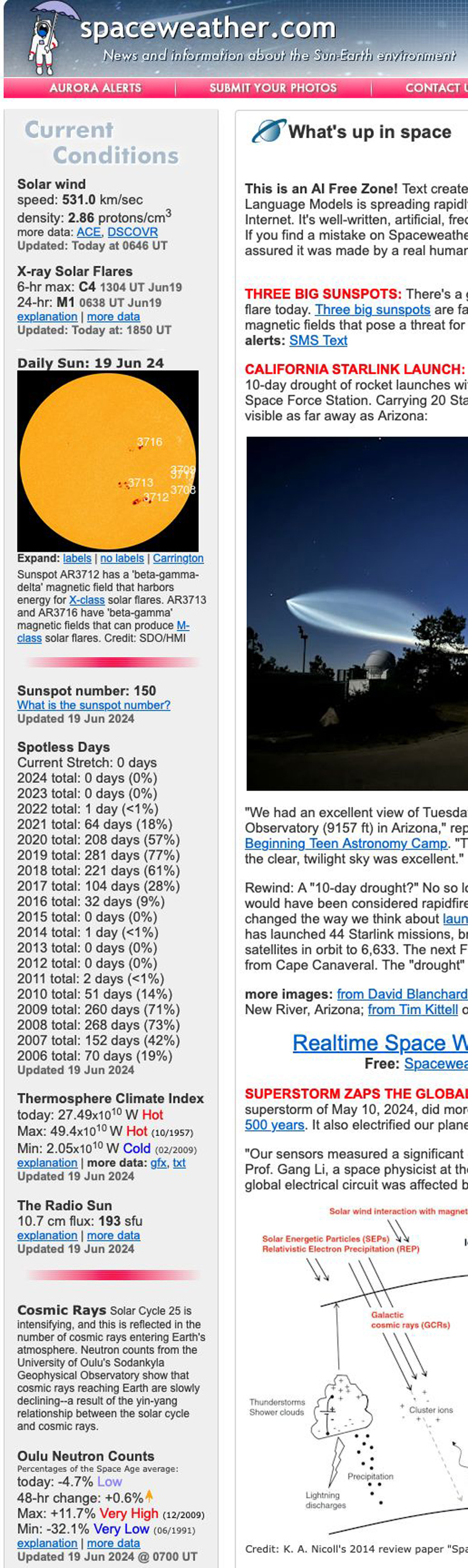 Second thing is a hot summer day is not unusual, and neither is a week long heat wave anywhere from May to September. The third thing is a bit more complex. I’ll link a documentary below on it, but to summarize: All of recorded climate history actually matches sunspot observations perfectly. Not like Al Gore or Michael Mann and their dialectical climate data, which can be compared very closely with Fisman, Fauci and Neil Ferguson’s dialectical Covid models which caused, well you all know what it caused. The reason that climate data matches sunspot data, is that sunspots mean solar storms. Solar storms cause solar wind, which washes over the earth with high energy, but also pushes away cosmic rays. Cosmic rays seed clouds and cool the earth and make the global climate more rainy. So when the sunspot number is low, like 0 to not much above 0, the Earth experiences a lot of cosmic rays, and is cooler and wetter, When there is a high sunspot number, the earth experiences hotter and drier weather. The graphs fit perfectly, meaning perfectly inversely, ever since Galileo took a toy made by a Dutch optics maker and pointed it at the Sun and discovered sunspots. Sunspot numbers have been recorded ever since. Around 15 to 20 years ago, actual scientists were concenred that we may be heading into a deeper part of the current ice age. The reason was, the sunspot number was zero for a long long time. Months, years even. And things had gotten cooler even though the left was constantly demanding we deconstruct our industry cause ‘global warming’. Have a look at the sunspot numbers now. As of mid afternoon, June 19, (two days before the summer solstice)