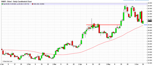 It has been a volatile few months for the silver price. After a solid rally in April and May, prices have pulled back thus far in June. So is this just a minor correction or the start of a significant pullback? We might be better able to answer that question by the end of this week.