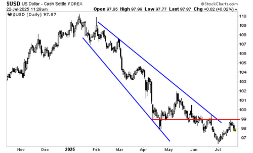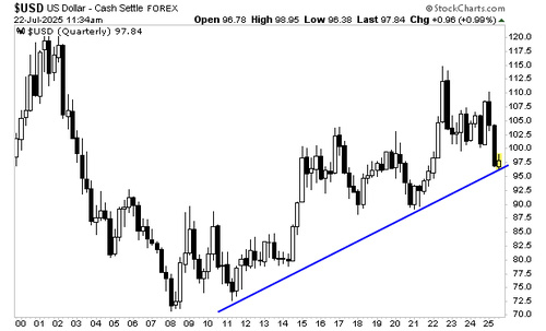 This is a huge deal. The $USD has been weak for months… but a break of this trendline would herald the start of a prolonged bear market. And that would have massive implications for numerous asset classes.