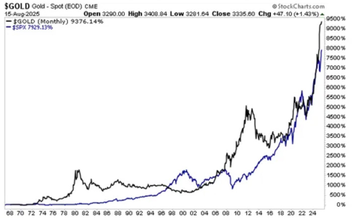 Moreover, despite all the hate, gold has actually been one of the greatest investments of the last 60 years. It’s even CRUSHED stocks.