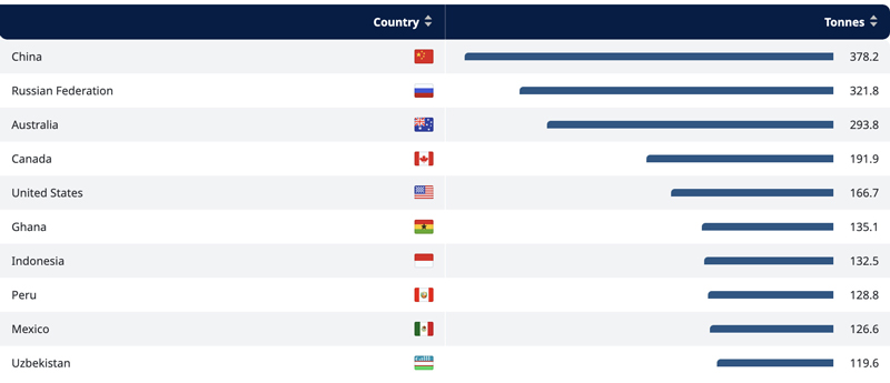 Russia has long been a top producer of gold. Last year, the country produced 321 metric tons, second only to China’s 378 metric tons.