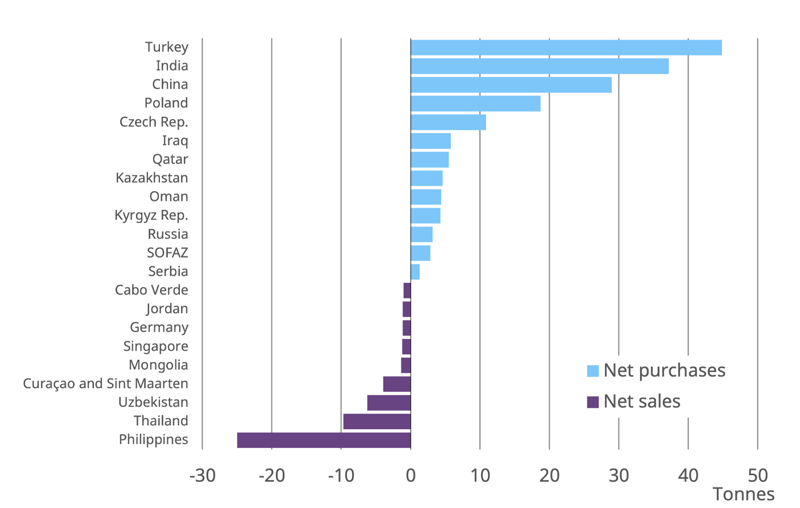Net purchases of gold by central banks in 2024. (Source: World Gold Council)