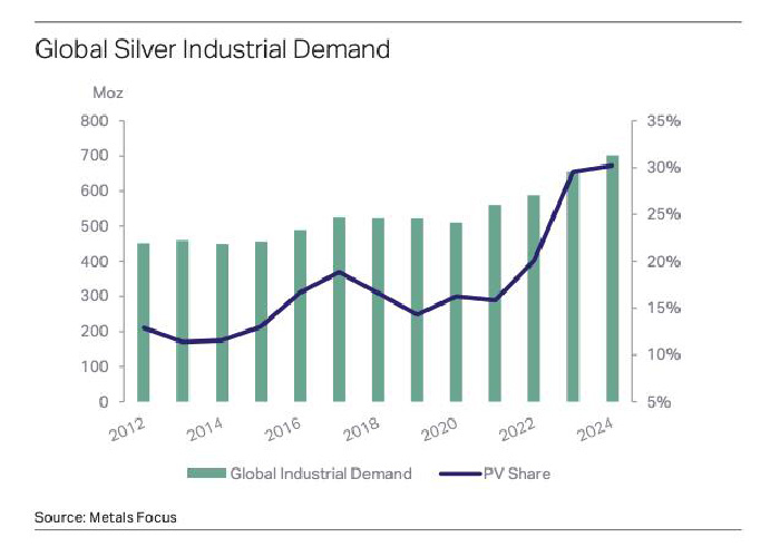 As the single largest application for silver in the industrial sector, accounting for more than 30% of global silver industrial offtake, PV has had a profound impact on global silver supply chains.