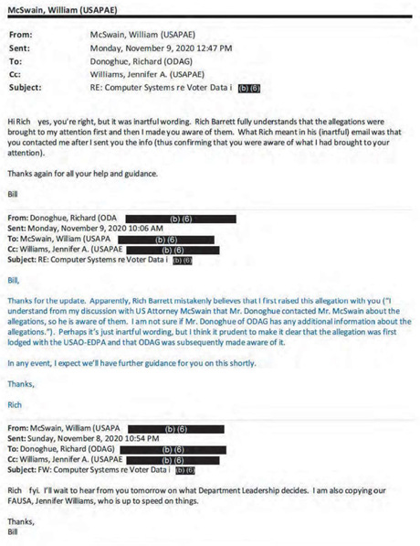 November 9th, 2020, Response from US Attorney General Barr to US Attorney McSwain and other reports from within the chain of command of the US Department of Justice – Part 2