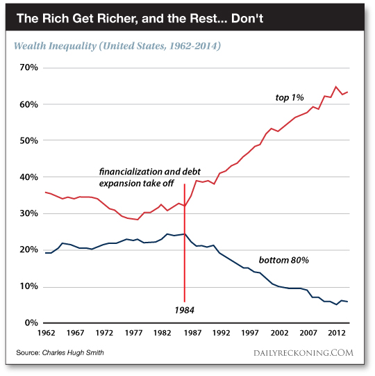 Yet in the early 1980s the tiptop 1% went leaping ahead… and began showing the 80% its dust.