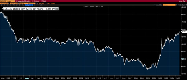 But since 2023, the opposite has happened. Central banks are holding steady or signaling cuts, while long yields have surged to their highest levels in decades.