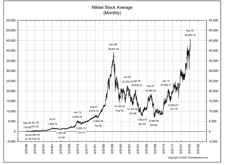 Who would have thought it? When we were children, China was a hopelessly poor and backward place. They had policies up the Yangtze. Policies for products. Policies for people. Policies for everything. And the more policies you implement, the less freedom you have to make real progress. That is why communism posed no long-term threat to the USA. Communism ensured that the Chinese would take no jobs from America…and never rival the US technologically. “Never interrupt an enemy when he is making a mistake,” said Napoleon. But instead of accepting the gift graciously, and perhaps offering a little insincere praise, we spent billions trying to get China to change her ways. Eventually, she did. And now China is eating our lunch…our dinner…and our afternoon snacks. What did she do? She simply did away with the economic policies that had hog- tied her people. “To get rich is glorious,” said Deng Xiaoping. Competition changes all the time. Japan famously had the most dynamic economy in the world…up until 1990. Everyone wanted to learn the latest Japanese buzzwords…Republicans and Democrats both aimed to imitate what they thought were Japan’s winning policies. But Japan had no monopoly on innovation or business genius. What it had was a cheap money policy….a monetary policy that distorted its economy. The background on this was that Ronald Reagan had won the White House in 1980. His Fed chief was seriously fighting inflation, with a fed funds rate as high as 20%. The high interest rates attracted savings from all over the world, causing the dollar to go up. Against the Japanese yen, for example it went up 50%. But tight money also produced a recession. So, the world’s leading finance ministers got together at the Plaza Hotel in New York in 1985. Their mission: a policy that would bring the yen up and the dollar down. The idea was simple enough. Central banks — guided by US Treasury Secretary James Baker — agreed to sell dollars to buy yen. A personal footnote. We sued Baker; as Treasury Secretary, he was responsible for running up US debt to an almost unimaginable level back then — $1.8 trillion. We argued that one generation had no right to burden future generations — who couldn’t vote — with debt. The case was listed as ‘Bonner v. Baker’ and was dismissed. But Baker’s mother was a Bonner. He joked that ‘Bonner v. Baker’ was what he had grown up with. If speculators had understood, they could have made fortunes as the dollar fell. The lesson: When governments want to bring a currency down, they can do so. And today, the Trump Team wants to bring the dollar down again. But it’s not without its hazards. The New York Times, in 1987, described the Plaza Accords as an ‘abrupt shift’ in monetary policy. The following day — October 18th — brought a panic. The Dow recorded its largest ever single-day drop. To put it in perspective, it would be the equivalent of a 10,000 point drop today. Japan meanwhile, had its Black Monday too…three years later. First, the rising yen did for the Japanese economy what the rising dollar had done to the US. That is, it caused a recession. Then, the Japanese authorities did what monetary officials did before and have done since — they came up with a new policy…stimulating the economy with lower interest rates. This in turn caused asset prices to go through the roof. But even in Japan, the familiar pattern of boom-bubble-bust rules. Policies don’t eliminate it. They make it worse. And the bust came in 1990. The Nikkei Dow, then at 38,000, retreated to a low of 7,000…and didn’t recover until last year — 35 years after the crash.