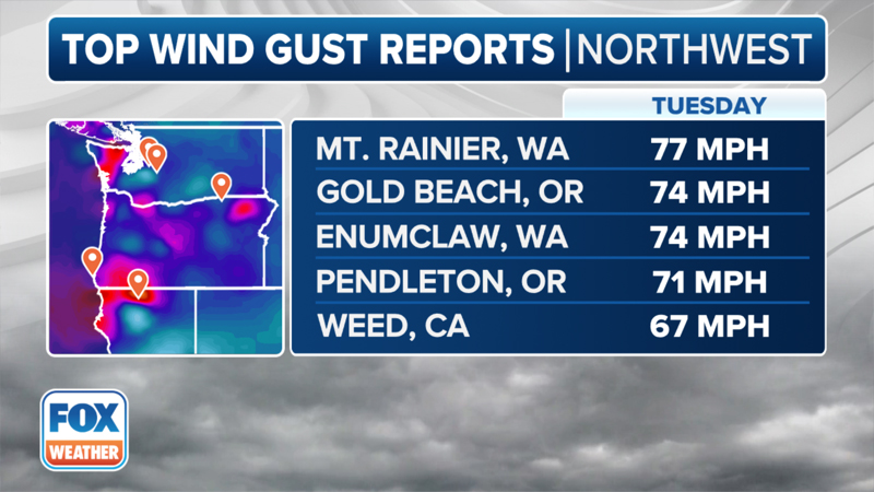 A massive bomb cyclone slammed into the Pacific Northwest on Tuesday night, unleashing torrential rains and tropical storm-like wind gusts up to 77 mph for certain areas. More than 600,000 customers across western Washington state are without power on Wednesday morning.