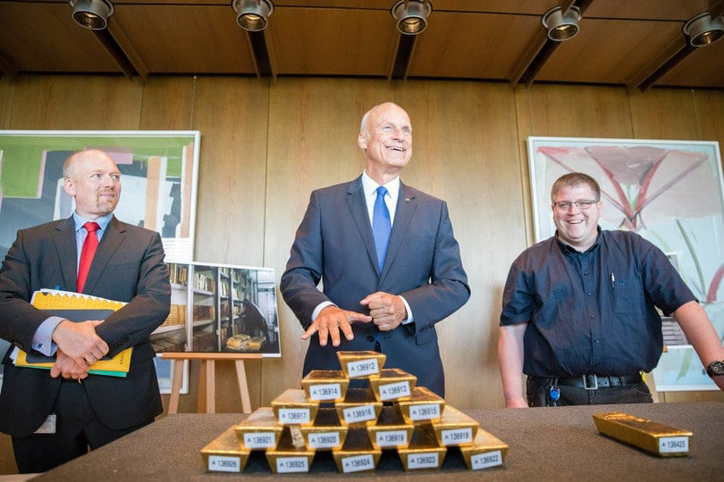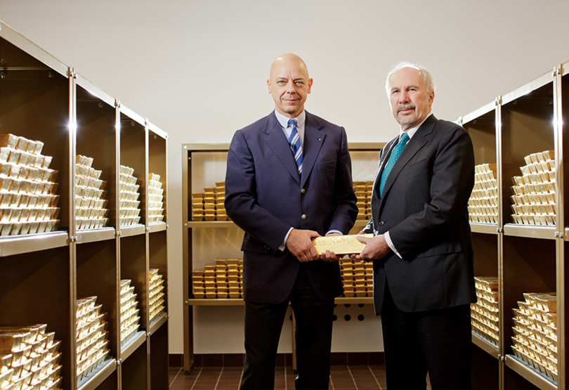 OeNB officials showing Austrian monetary gold after 90 tonnes from London were repatriated in 2018. Left, OeNB Director Kurt Pribi, right, Governor Ewald Nowotny. In 2023, it was disclosed on the website of the central bank of France: