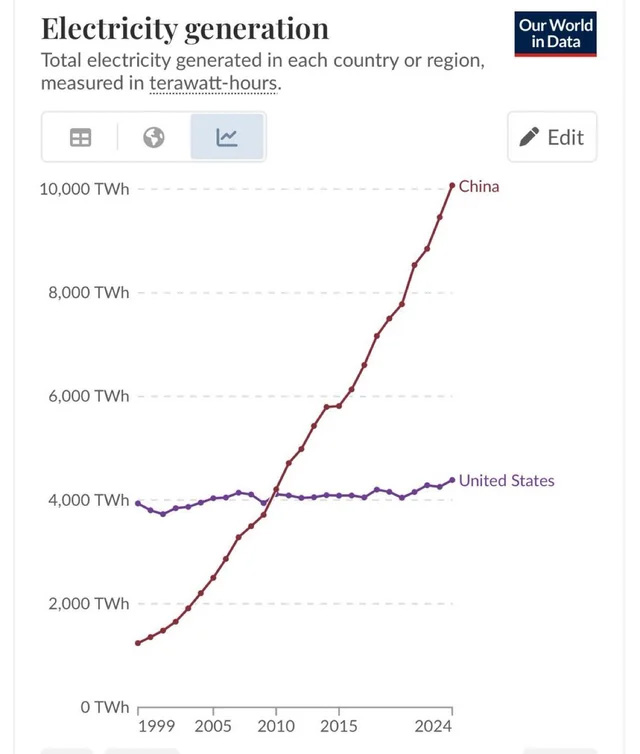 China set out to make itself an auto-manufacturing powerhouse two decades ago. Now they’re running the same playbook with AI hardware and software. China has their problems. Too much debt. Ghost cities. Overcapacity. But to underestimate them is a mistake. We must face up to the fact that they are becoming a peer competitor. Competition and necessity drive innovation. The modern computer industry was born because we needed to crack Germany’s encryption codes during WW2. So having a fierce competition with China isn’t a bad thing. We should embrace it. But to beat them, we’ll need to take full advantage of America’s greatest asset: our innovative and entrepreneurial spirit. And that means the government needs to become an ally of business, rather than a roadblock. President Trump has made good progress on this front, cutting red tape and streamlining processes. But we need to do much more. If we don’t get our act together, China is on track to win the AI race. And possibly much more.