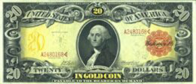 Remember: Under the gold-coin, silver coin standard, a $20 St. Gauden’s gold coin and a $20 gold certificate (or a $20 bill) were interchangeable in terms of value. Not so today. Today, it takes about $4,300 to purchase a $20 St. Gauden’s gold coin. In other words, to purchase the St. Gauden’s $20 gold coin, a person needs to pay around 215 $20 bills rather than simply one $20 bill.